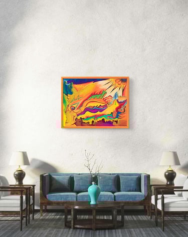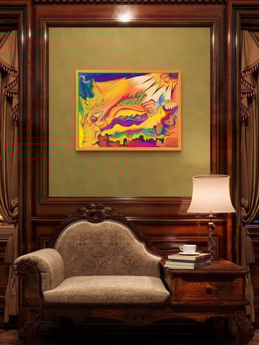 This piece is 31.5” x 23.6” (80cm x 60cm), using Oil paint. READY TO HANG. Please enquire for purchase or any queries & questions you may have about the piece. Please note that piece does not come framed.