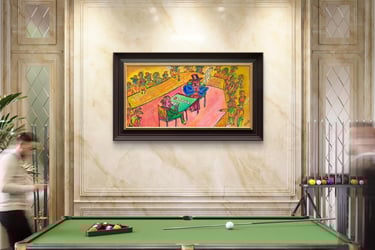 This piece is 39.4” x 19.7” (100cm x50 cm), using Oil paint. READY TO HANG. Please enquire for purchase or any queries & questions you may have about the piece. Please note that piece does not come framed.